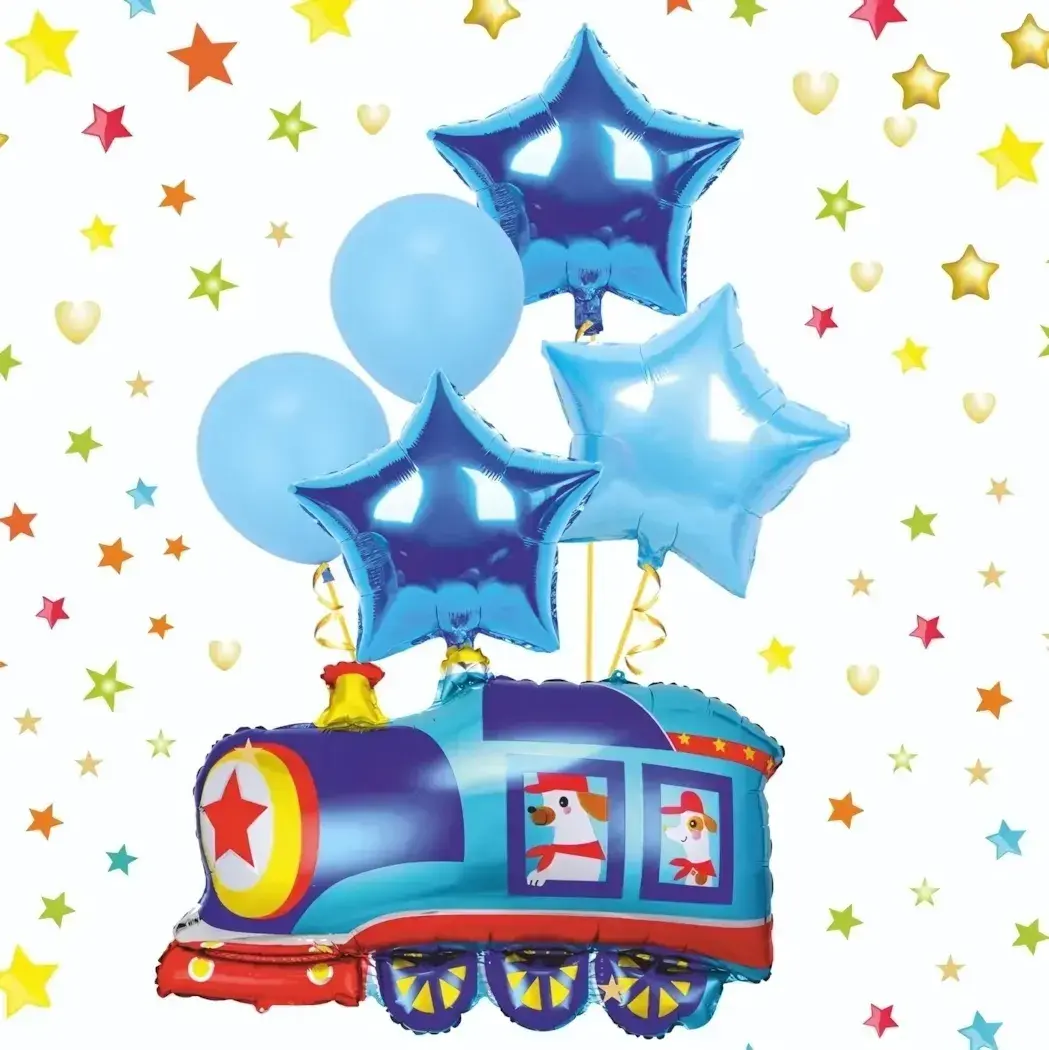 - В комплекте: 3 фольгированных звезды, 2 латексных шара, 1 фигурный паровозик