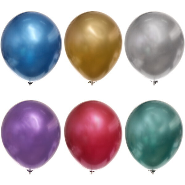 Набор включает 25 шаров диаметром 12 дюймов (30 см) в микс цветов, что позволяет создать яркую и разнообразную цветовую гамму. Благодаря металлическому эффекту, шары выглядят особенно эффектно и привлекательно.