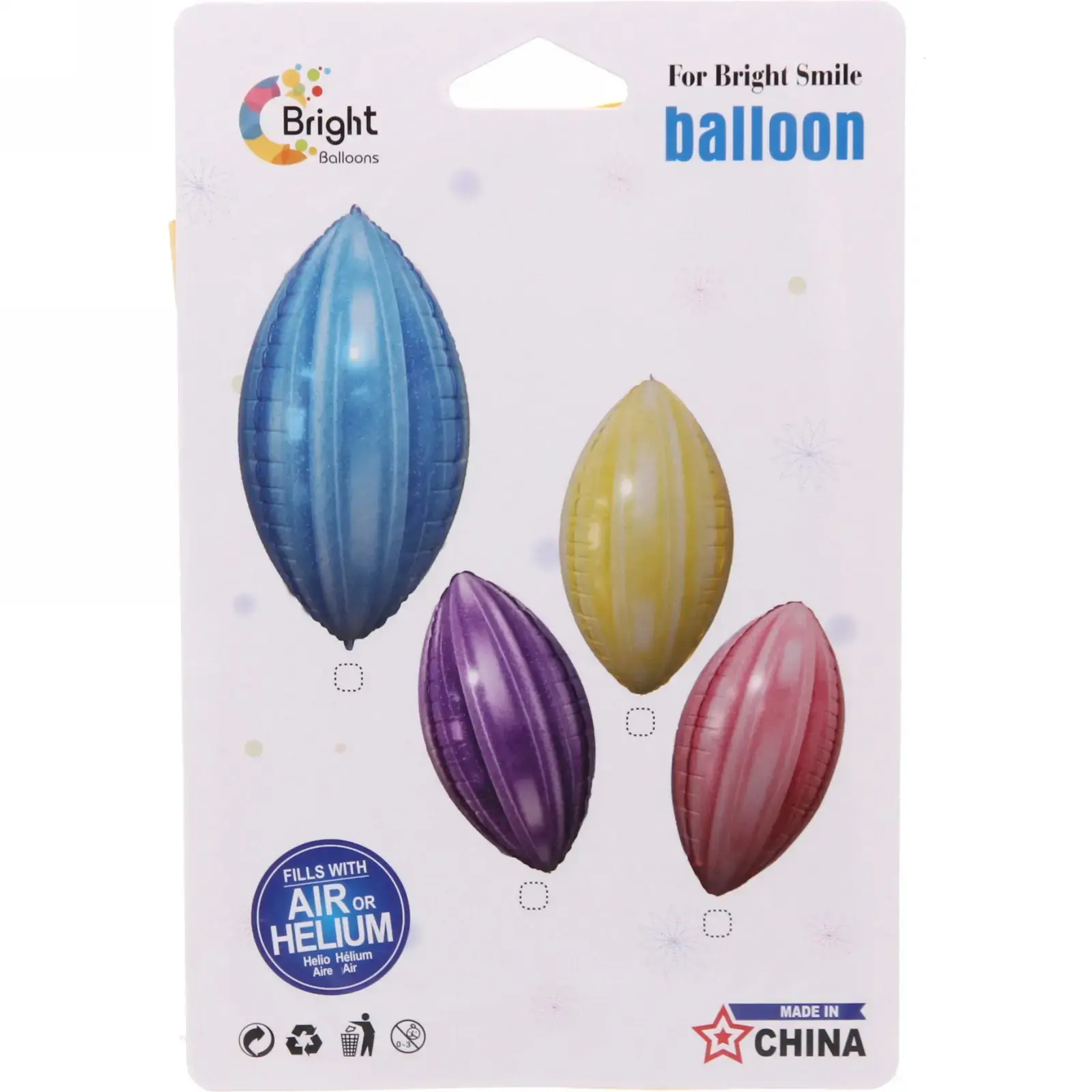 Шар имеет овальную форму с рифленой текстурой, что придает ему уникальный вид. Он выполнен в светло-желтом цвете с блестящими эффектами, что делает его особенно привлекательным. Не упустите возможность сделать ваш праздник ярче и веселее с помощью этого замечательного воздушного шара!