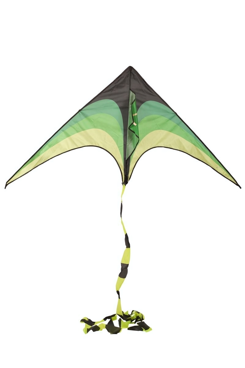 Воздушный змей треугольный для активного отдыха, 160см с лентой управления, зелено-чёрный градиент