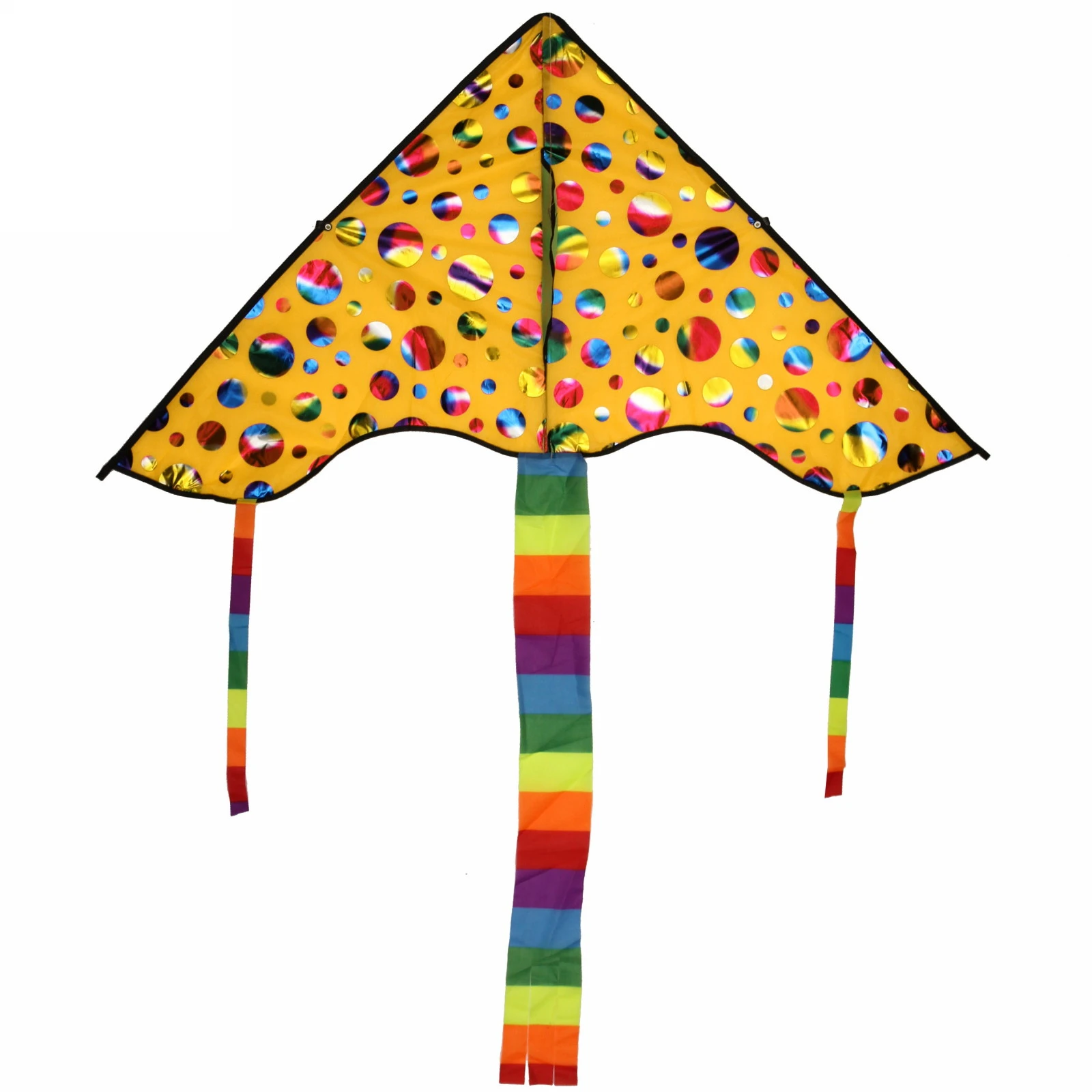 Благодаря продуманной конструкции и качественным материалам, змей 'Самолёт' устойчив в воздухе и не требует специальных навыков для управления. Его яркий дизайн с радужными элементами делает его заметным даже на большом расстоянии, а прочный нейлон гарантирует долгий срок службы.