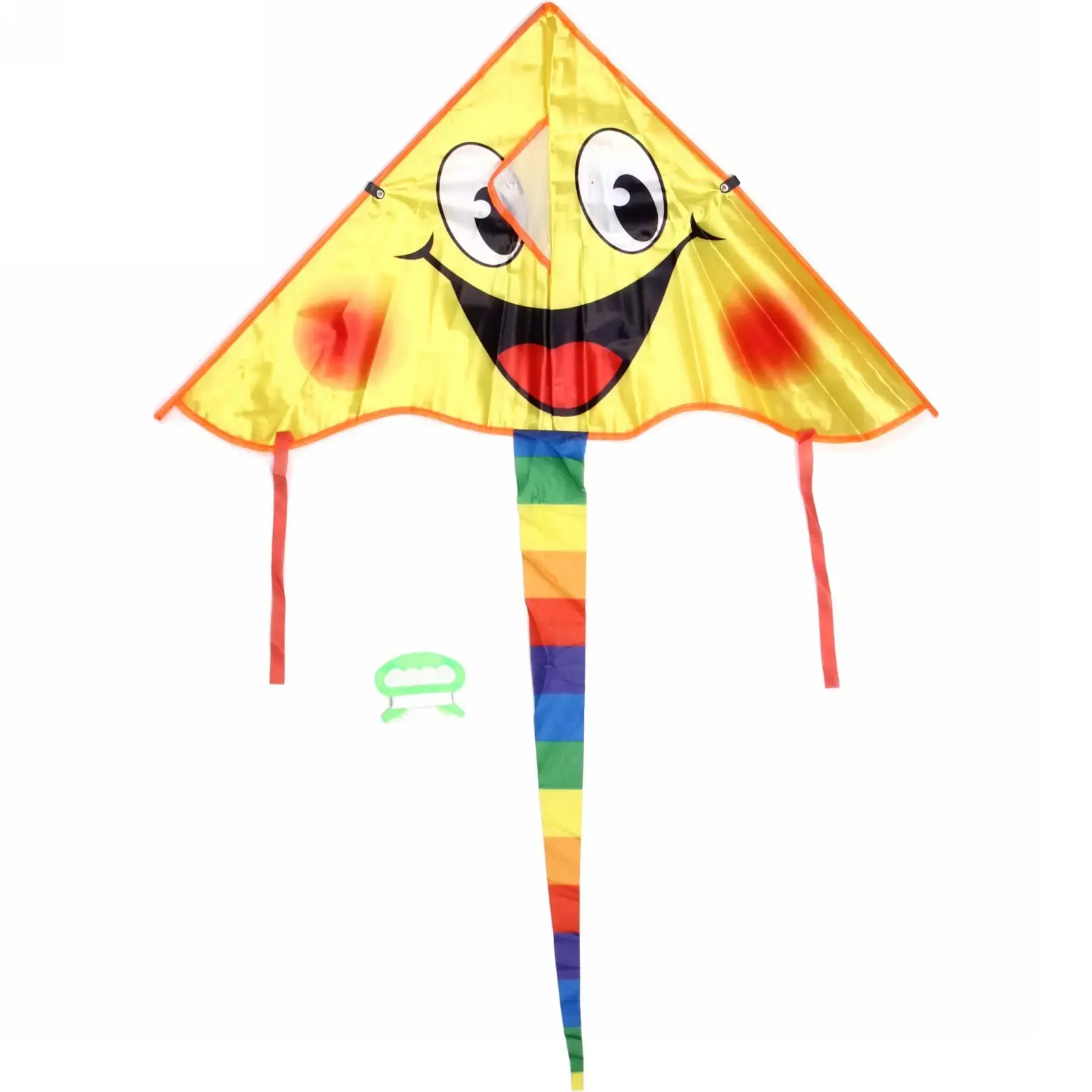 Воздушный змей «Солнечный смайл» 80 см, нейлон, желтый с разноцветным хвостом, для активного отдыха
