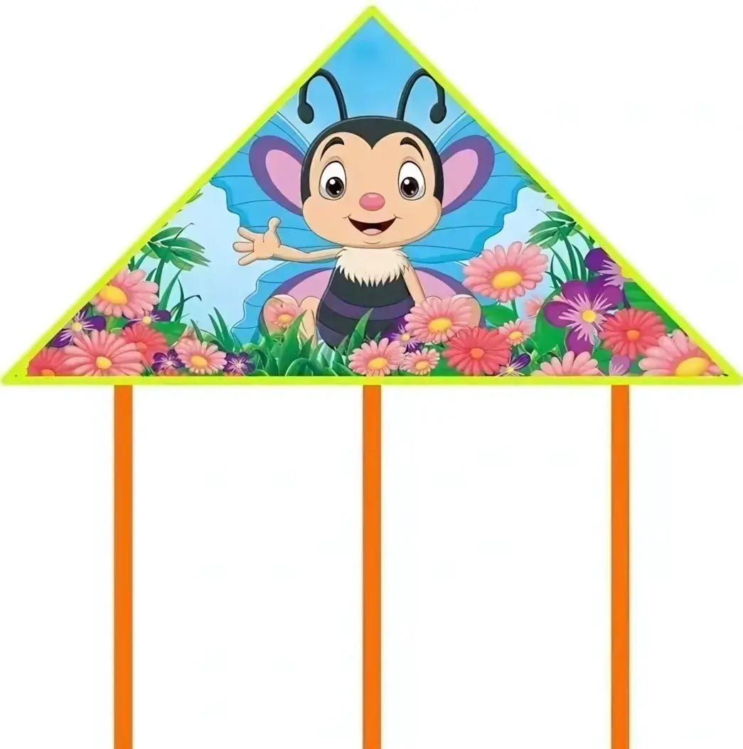 Этот красочный воздушный змей станет вашим надежным спутником для веселого времяпрепровождения на свежем воздухе. Его яркий дизайн с улыбающейся пчелой и цветущими растениями привлечет внимание и подарит море положительных эмоций.