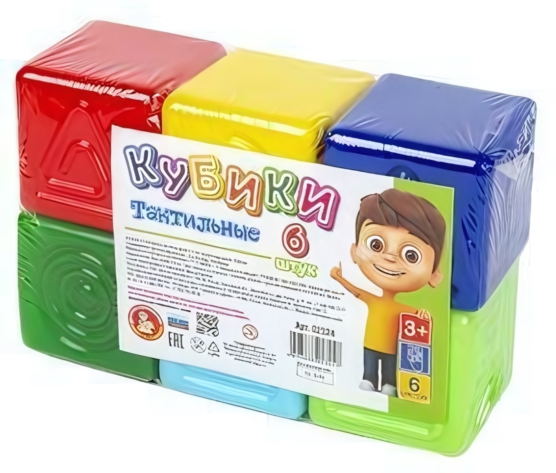 Кубики упакованы в целлофан, что обеспечивает их защиту и удобство хранения. Они соответствуют всем стандартам безопасности, что подтверждается значками на упаковке. Выбирая тактильные кубики, вы делаете шаг к развитию вашего ребенка, обеспечивая ему интересные и полезные занятия.