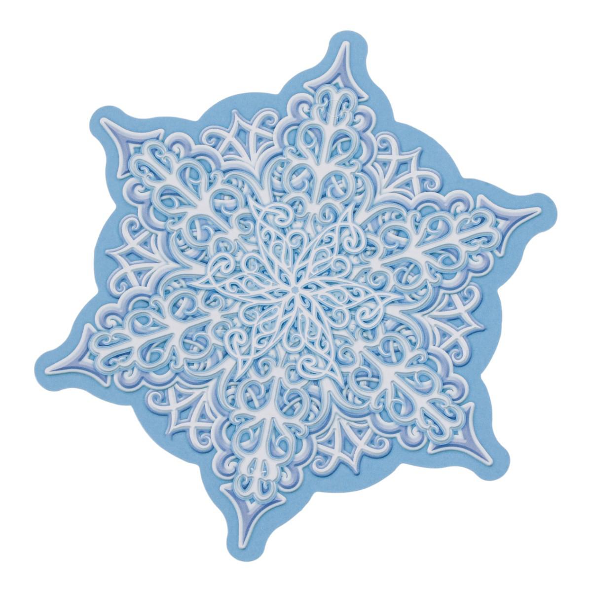 Двухсторонняя вырубная фигурка в форме изящной снежинки станет универсальным помощником для создания волшебной зимней атмосферы. Её сложный ажурный узор и нежная голубая расцветка мгновенно привлекут внимание и поднимут настроение детям и взрослым.