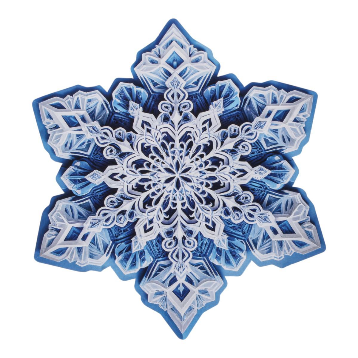 Двухсторонняя вырубная фигурка в форме изящной снежинки — это готовое праздничное украшение, которое мгновенно преобразит любое пространство. Яркий сине-белый дизайн с детализированным кружевным узором создаёт ощущение настоящей зимней сказки, добавляя интерьеру уюта и новогоднего настроения.
