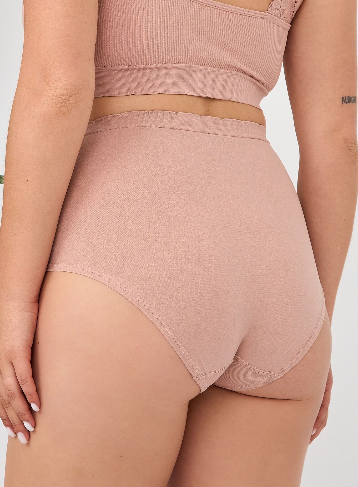 Высокие бесшовные трусики созданы для тех, кто ценит удобство и незаметность под одеждой. Мягкая гладкая текстура материала обеспечивает комфорт в течение всего дня, а высокая посадка до талии деликатно корректирует силуэт, подчеркивая вашу естественную красоту.