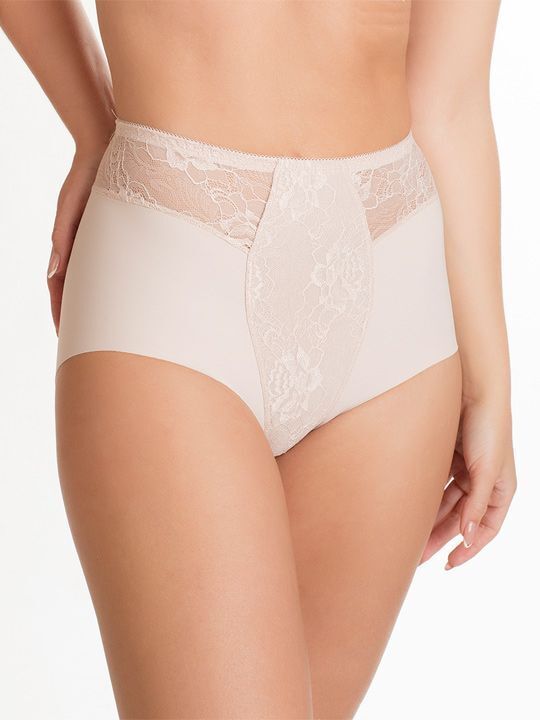 Трусики представлены в пудровом цвете, который легко сочетать с другими оттенками. Размер 42 соответствует европейским стандартам, поэтому для определения российского размера необходимо прибавить 6. Это важно учитывать при выборе. Трусики имеют высокую линию талии, что обеспечивает дополнительный комфорт и поддержку. Кокетка по переду и спинке украшена кружевным полотном, что придает изделию изысканный вид.