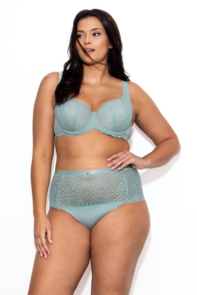 Трусики высокие Gaja, размер L, цвет аквамариновый, кружево и хлопок