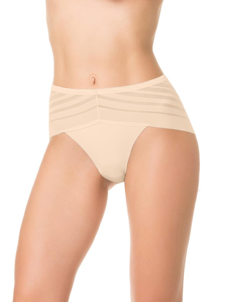Состав из 84% нейлона и 16% спандекса обеспечивает идеальное облегание без эффекта «стягивания». Высокая линия талии мягко поддерживает фигуру, создавая ровный силуэт под облегающей одеждой. Бежевый цвет универсально сочетается с любым нижним бельём.