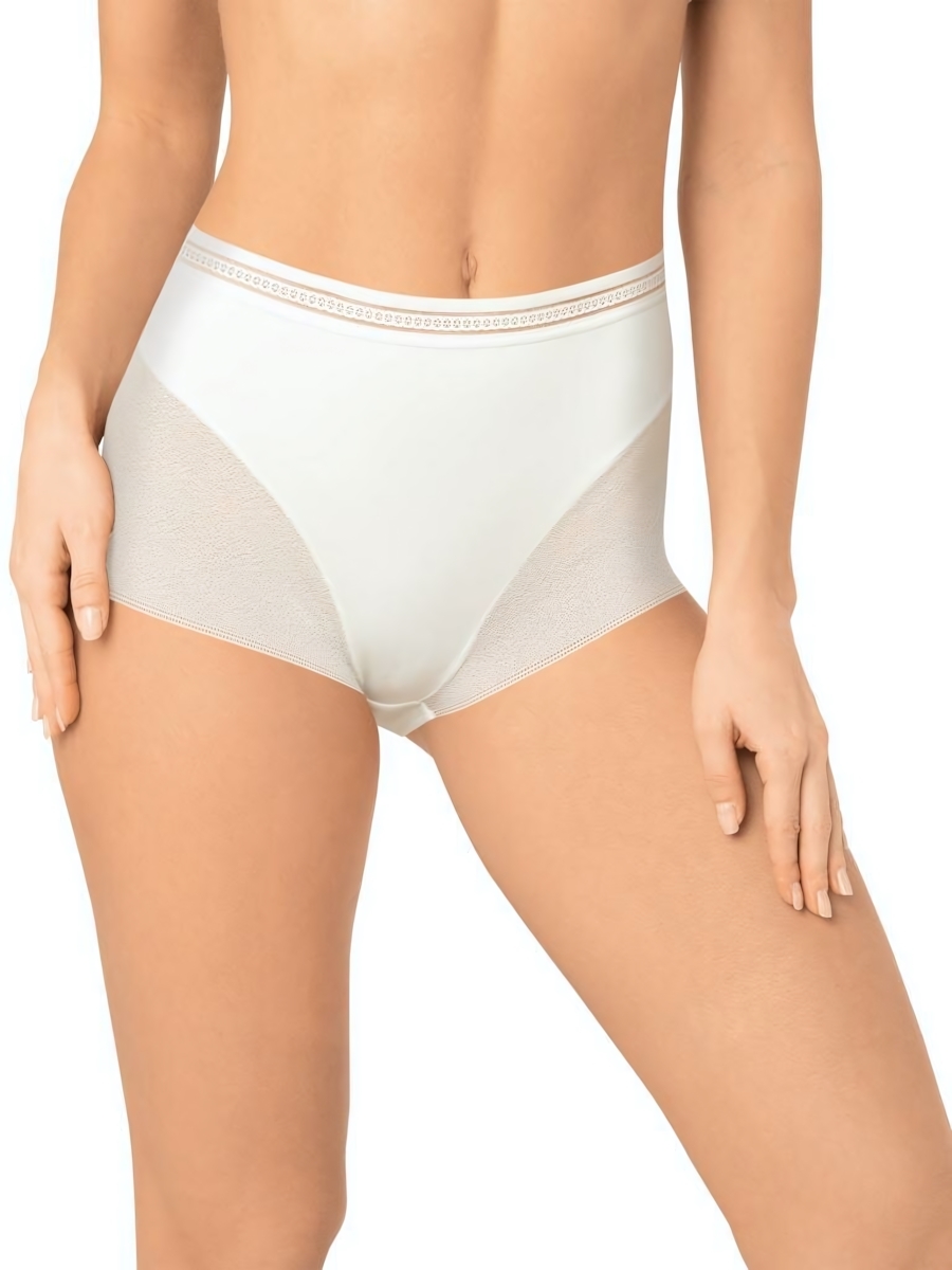 Погрузитесь в мир комфорта и стиля с высокими трусиками-слипами из кружева. Эти трусы обеспечивают идеальную посадку и поддержку благодаря высокой линии талии, что делает их отличным выбором для повседневного ношения. Молочный цвет добавляет изысканности, а сетчатая структура боков придает изделию легкость и воздушность.