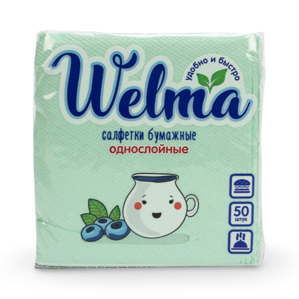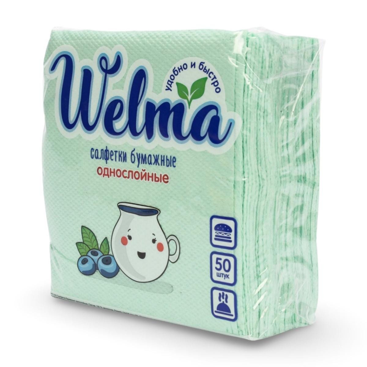Салфетки бумажные «Welma» однослойные, 50 шт, зелёные, для сервировки и уборки