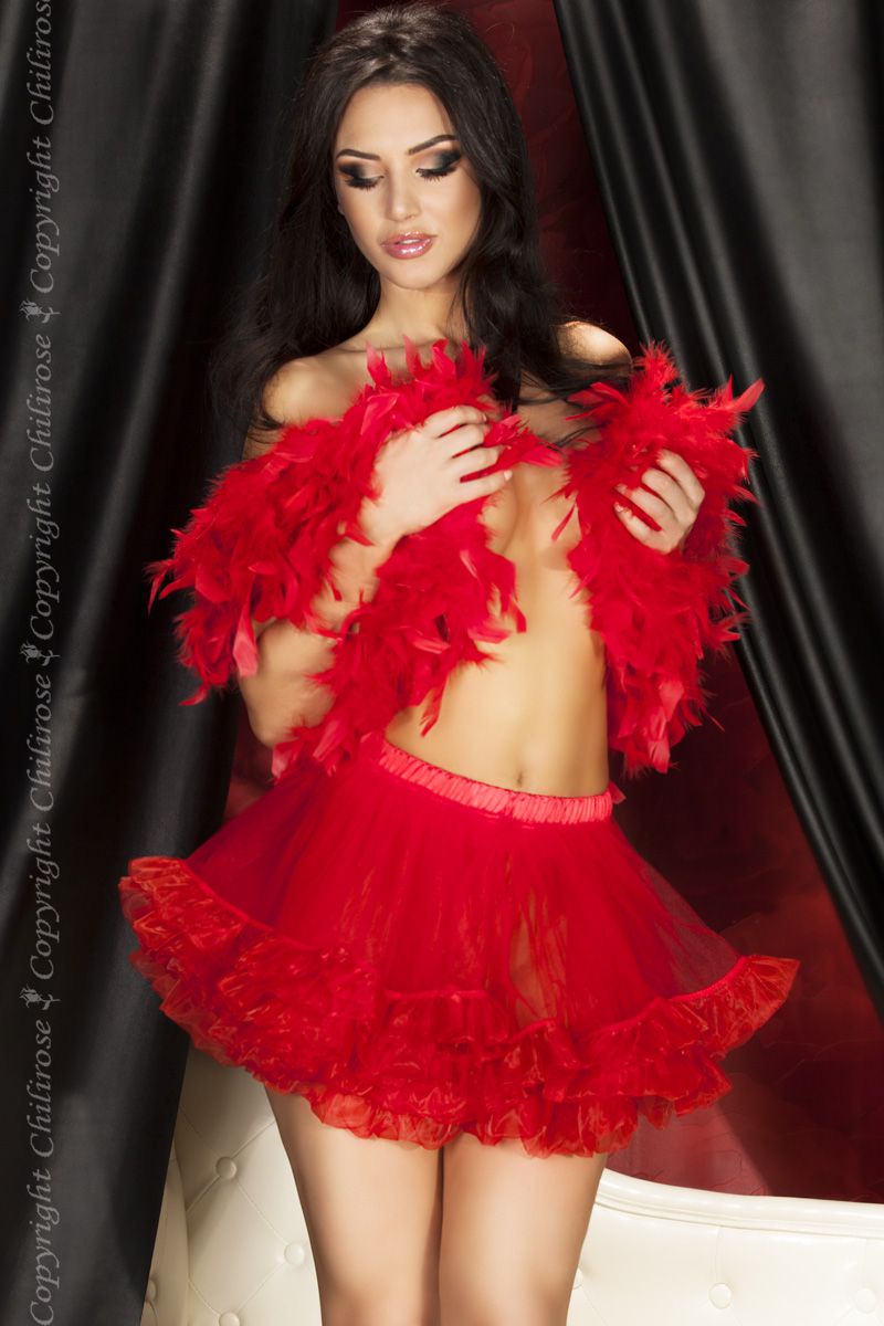 Пышная и воздушная юбка с многослойными рюшами создаст эффектный и привлекательный образ для особых случаев. Её яркий красный цвет и игривый дизайн добавят уверенности и помогут выделиться в любой обстановке.