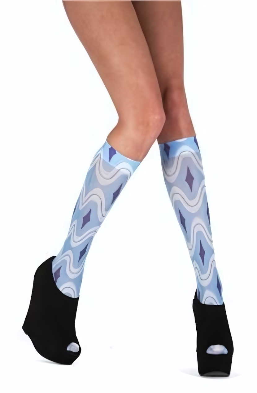 Материал: 93% полиамид + 7% эластан — оптимальное сочетание для воздухообмена и эластичности. Нежный голубой оттенок с волнистыми узорами добавит изюминку в любой образ: от офисного лука до вечернего выхода.