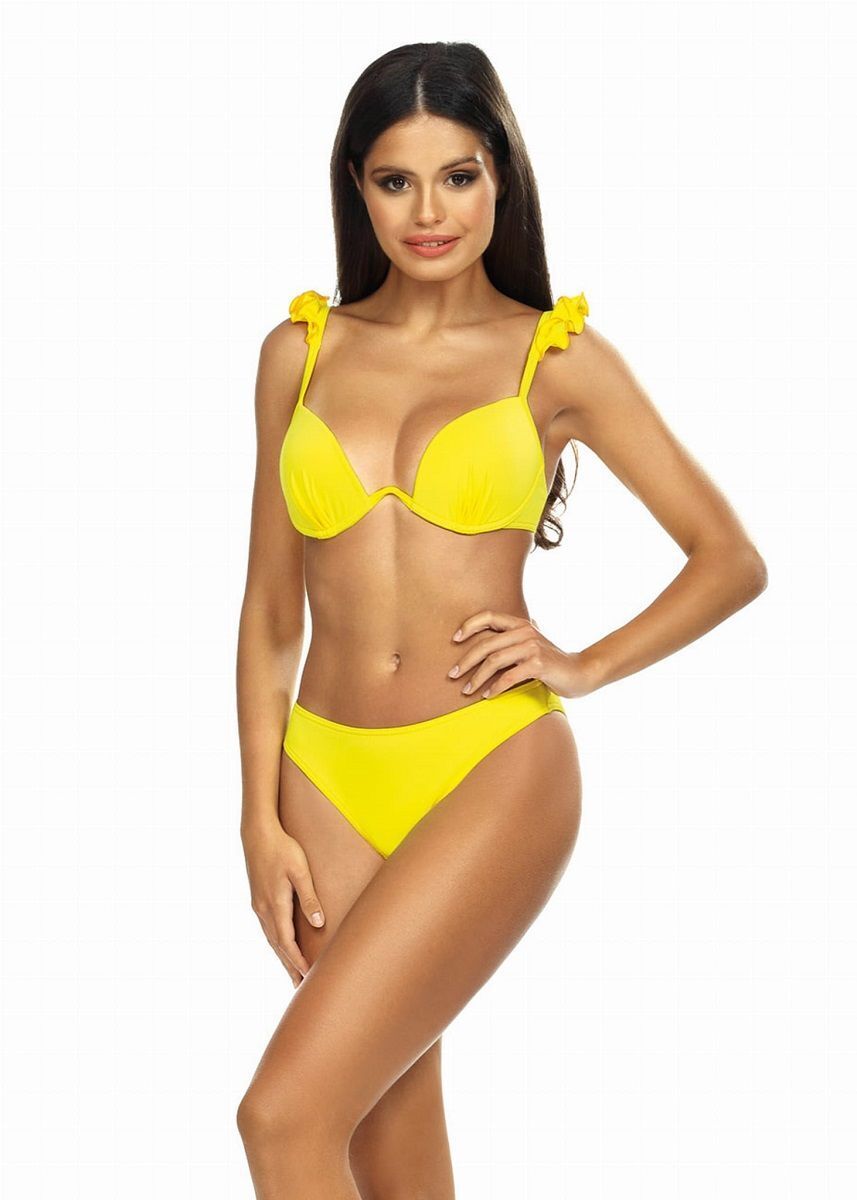 Этот купальник станет вашим идеальным спутником для пляжного отдыха. Яркий желтый цвет и стильные рюши на бретелях добавляют нотку игривости и женственности, а удобная конструкция обеспечивает комфорт в течение всего дня. Купальник подходит для женщин, которые ценят как стиль, так и функциональность.