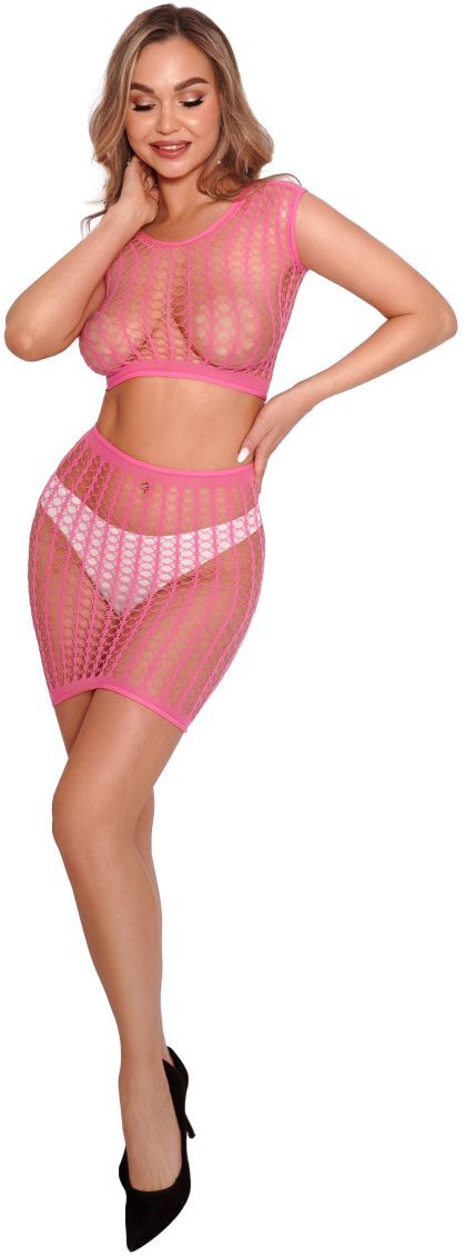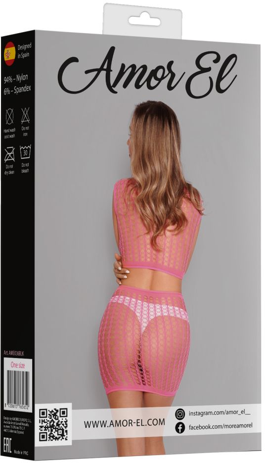 Почувствуйте уверенность и соблазнительность в стильном комплекте от AmorEl. Благодаря яркому желтому цвету и сетчатой текстуре, этот топ и юбка станут идеальным выбором для особенных моментов.