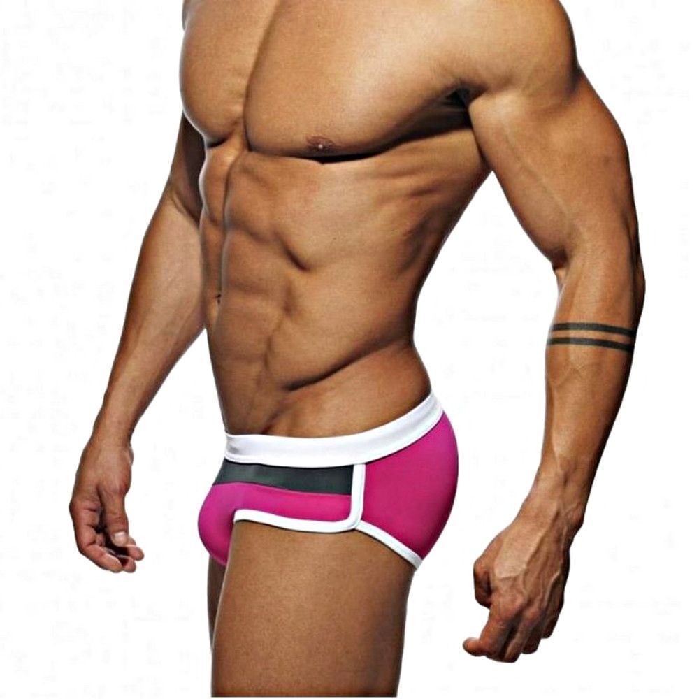 Эластичные мужские плавки с модным дизайном созданы для тех, кто ценит комфорт и хочет подчеркнуть свою индивидуальность. Яркий розовый цвет с контрастными черно-белыми полосами на поясе добавит смелый акцент вашему образу.