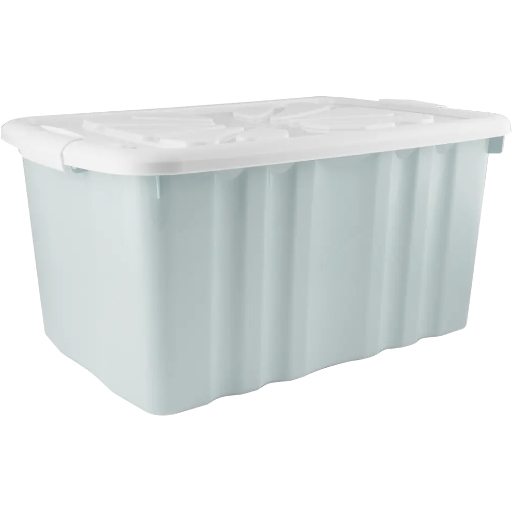 Ящик изготовлен из качественного пластика светло-голубого цвета с белой крышкой. Размеры 60х40х30 см оптимальны для хранения различных предметов. Рельефная поверхность крышки обеспечивает удобный захват при открывании.