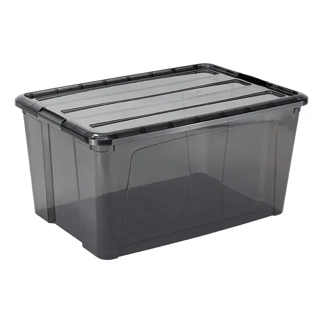 Ящик для хранения «КИП» 45л с замками, пластик прозрачно-черный, ручки для переноски