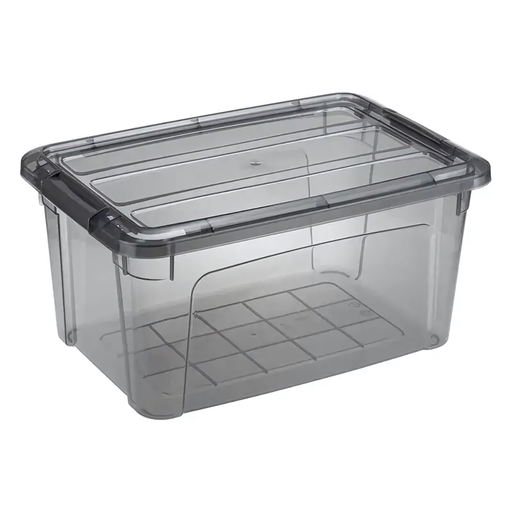 Ящик легко открывается и плотно закрывается благодаря надёжной крышке с фиксирующими выступами по всему периметру. Его прямоугольная форма с закруглёнными углами подходит для хранения канцелярии, мелких инструментов, аксессуаров, игрушек и других бытовых мелочей. Эстетичный серо-чёрный прозрачный пластик гармонично впишется в интерьер, не загромождая пространство визуально.