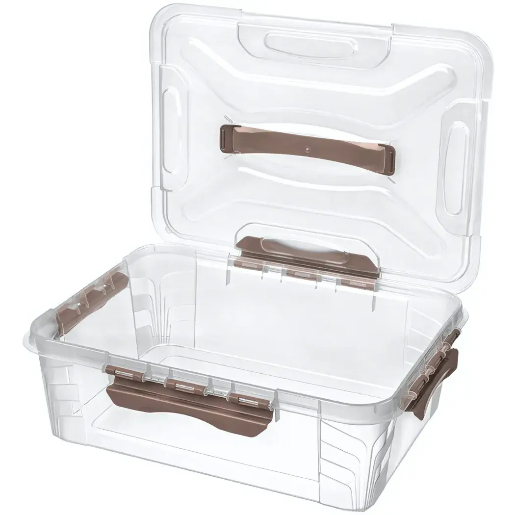 Выбирая контейнер «GRAND BOX», вы получаете не только практичное решение для хранения, но и стильный элемент интерьера. Коричневый цвет и прозрачные стенки позволяют легко видеть содержимое, а также гармонично вписываются в любой интерьер. Контейнер подходит для хранения хобби-материалов, спортивного инвентаря и даже текстиля. Он станет отличным помощником для организации пространства в детской комнате или мастерской.