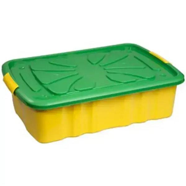 Ящик для игрушек 60х40х17 см, пластик, желтый с зеленой крышкой, закругленные углы