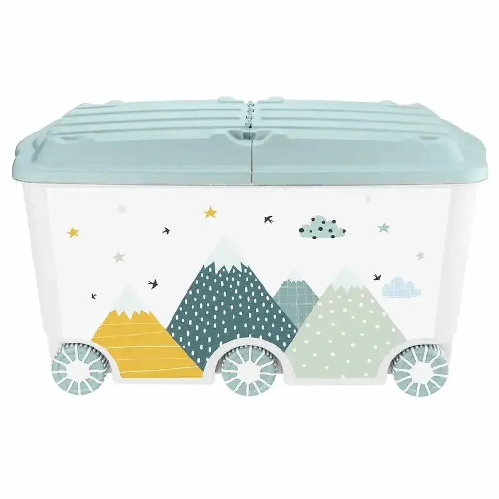Ящик для игрушек на колесах с декором «Горы», 66,5л, 685х385 мм, светло-голубой