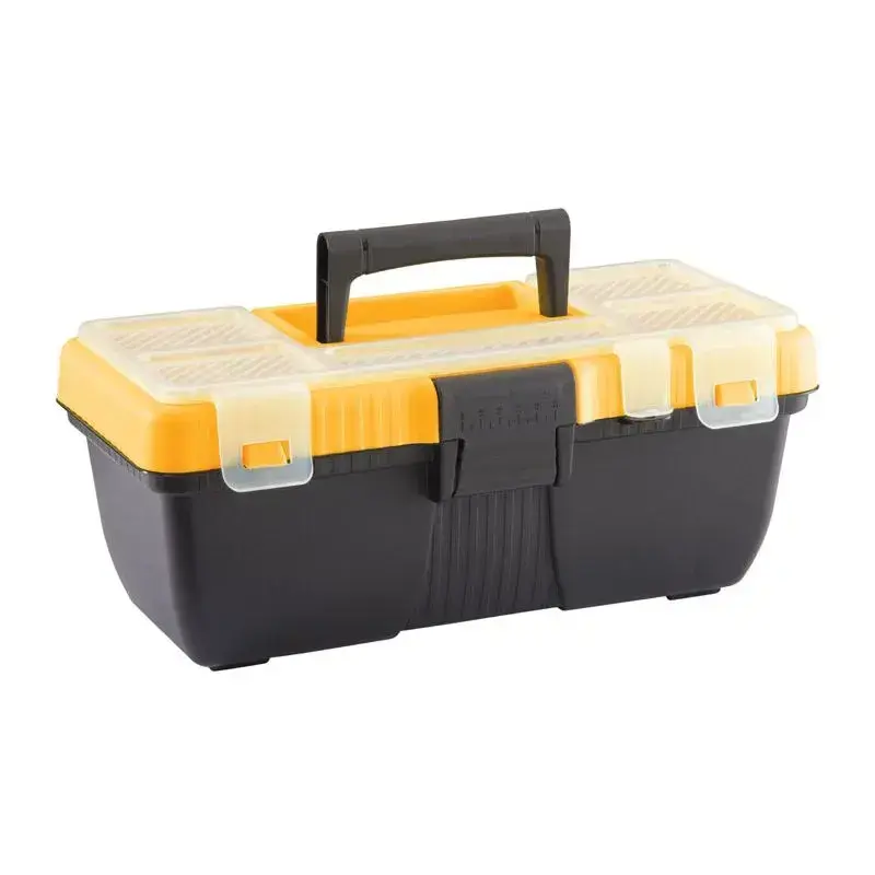 Ящик для инструментов 15л, пластик, черный/желтый, комплект 6 шт, усиленные зажимы