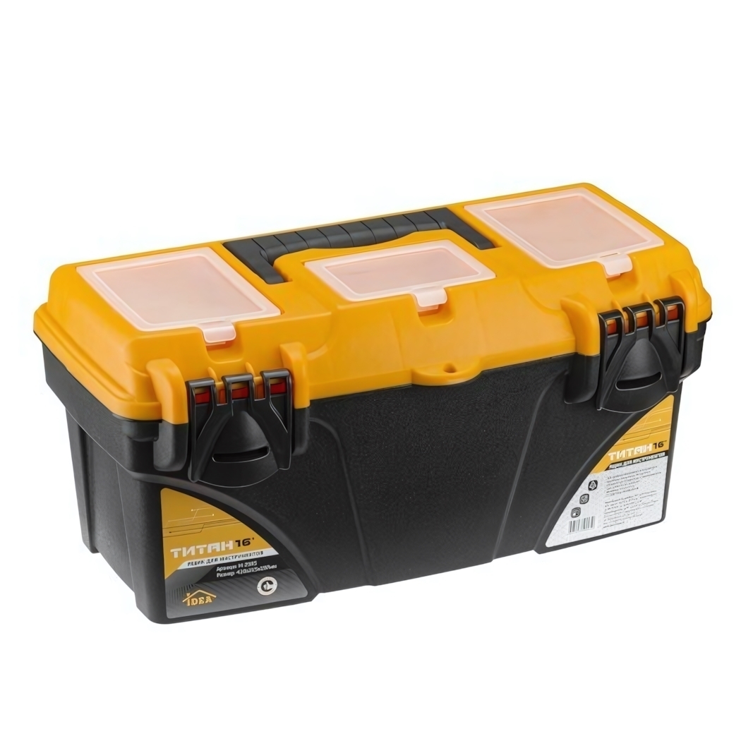 Ящик для инструментов 'ТИТАН' 16 с секциями, чёрный/жёлтый, пластик