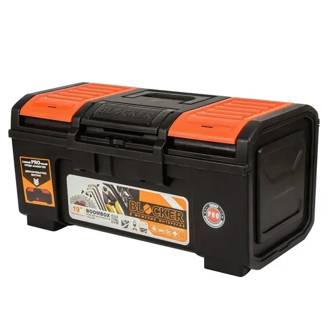 Ящик для инструментов "Boombox 19", жесткий пластик, черный/оранжевый, 40х20х15см