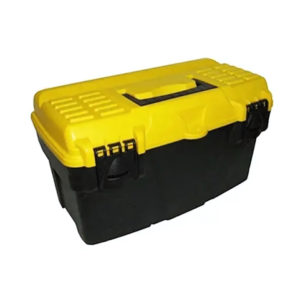 Двухцветный корпус в чёрно-жёлтой гамме обеспечивает высокую видимость в мастерской. Система двойных замков защищает от самопроизвольного открытия, а плотное прилегание крышки исключает попадание пыли. Универсальная форма позволяет штабелировать ящики при хранении.