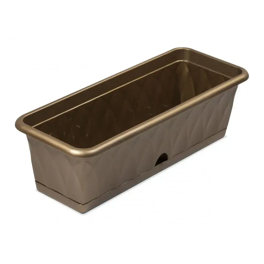 Ящик для растений Сиена 58см с поддоном, золотистый, пластик, комплект 5 штук