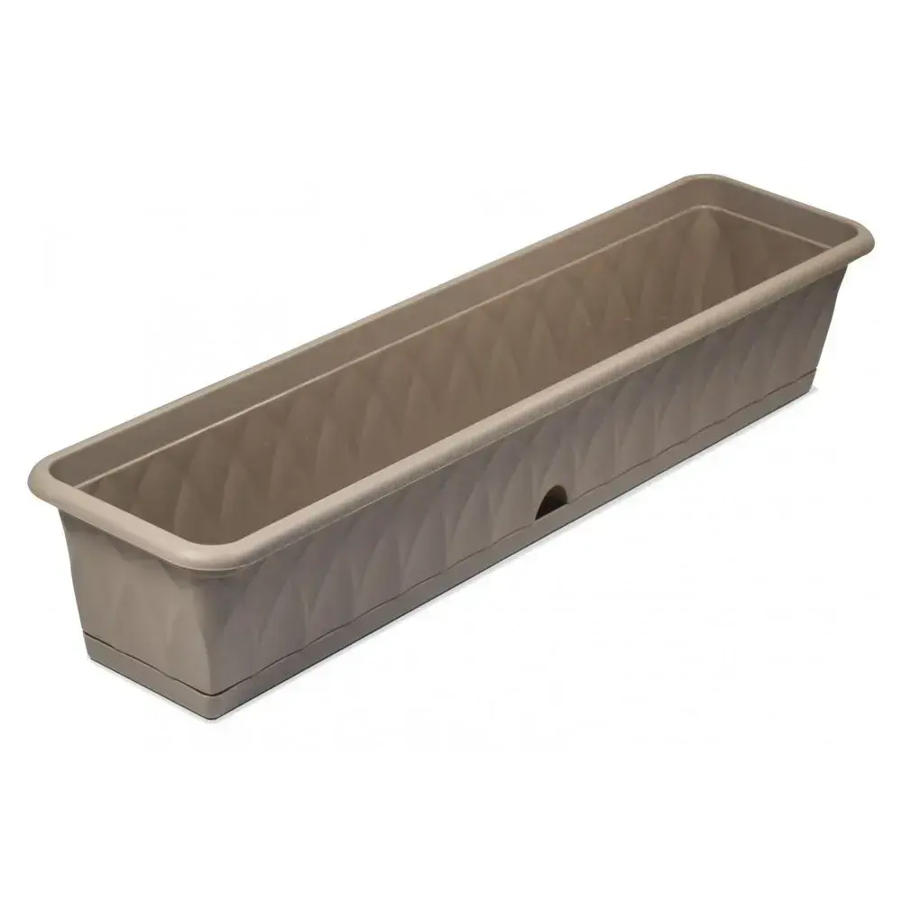 Светло-серые ящики с геометрическим рисунком органично впишутся в современный ландшафтный дизайн. Прямоугольная форма оптимальна для выращивания рассады, зелени и декоративных культур. Легкий вес и гладкая поверхность упрощают переноску и чистку.