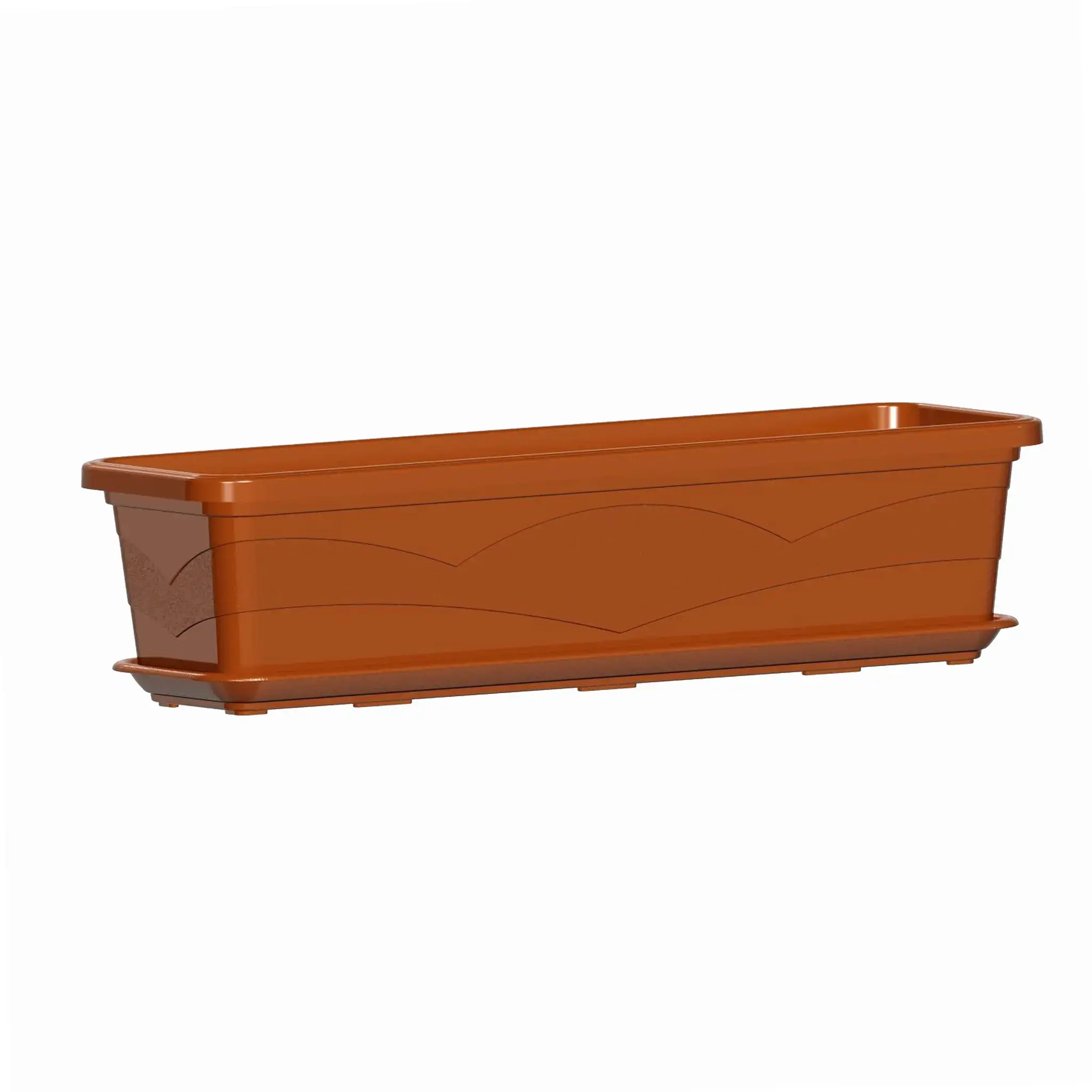 Размер ящика составляет 60 см в длину, что позволяет разместить в нем несколько растений одновременно. Его терракотовый цвет не только эстетичен, но и практичен, так как не выгорает на солнце. Ящик легко чистится и не требует особого ухода, что делает его идеальным выбором для занятых людей.