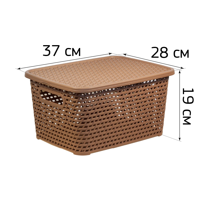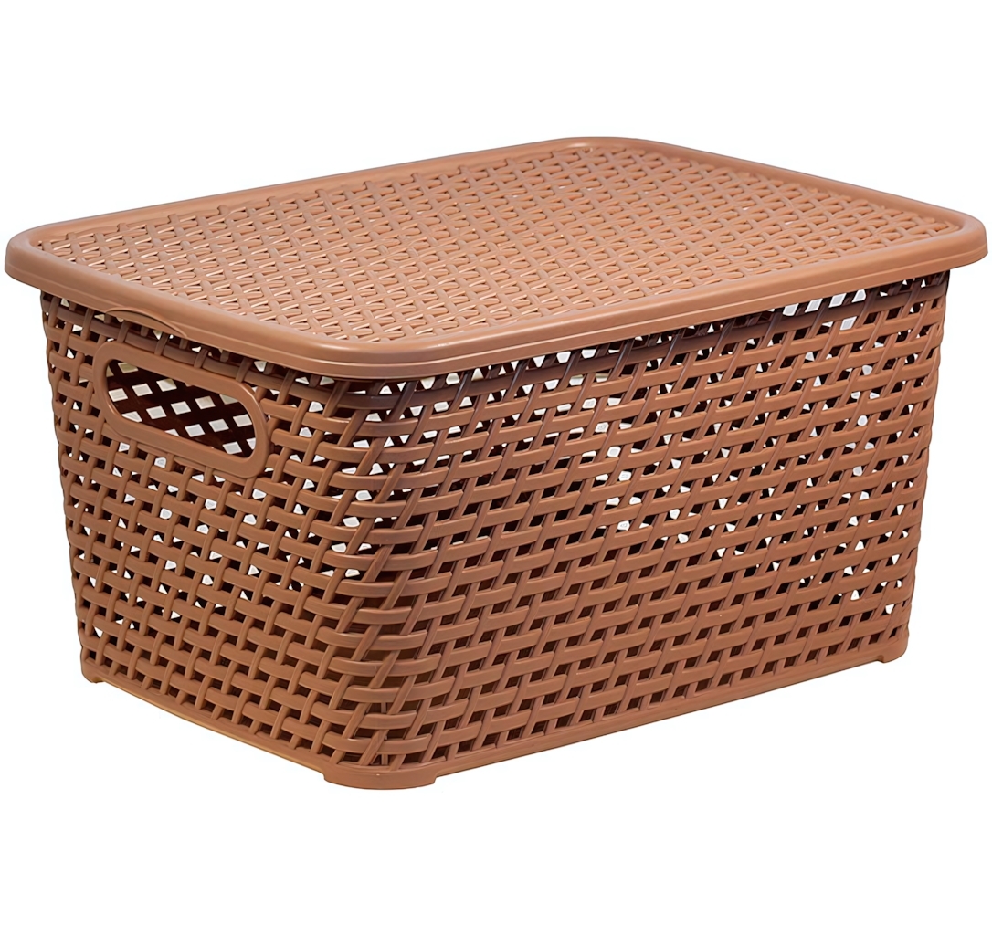 Изготовлен из качественного пластика с фактурой, имитирующей ротанг, что делает его устойчивым к механическим повреждениям и атмосферным воздействиям. Перфорированные стенки обеспечивают отличную вентиляцию содержимого, предотвращая образование запахов и конденсата. Удобная форма и наличие крышки позволят надежно защитить ваши вещи и поддерживать порядок.