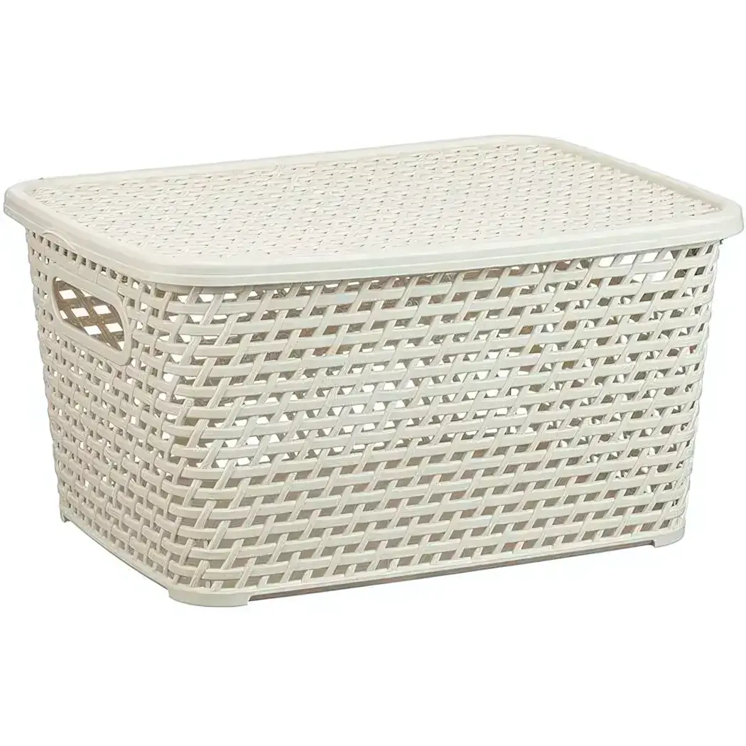 Ящик для хранения "РОТАНГ" с крышкой, 23л, белый ротанг, 450х265мм