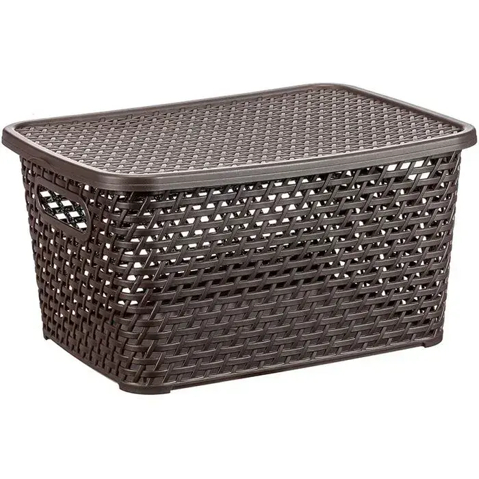 Ящик для хранения с крышкой "Ротанг", 23л, 45х26.5см, пластик, комплект 4 шт, коричневый