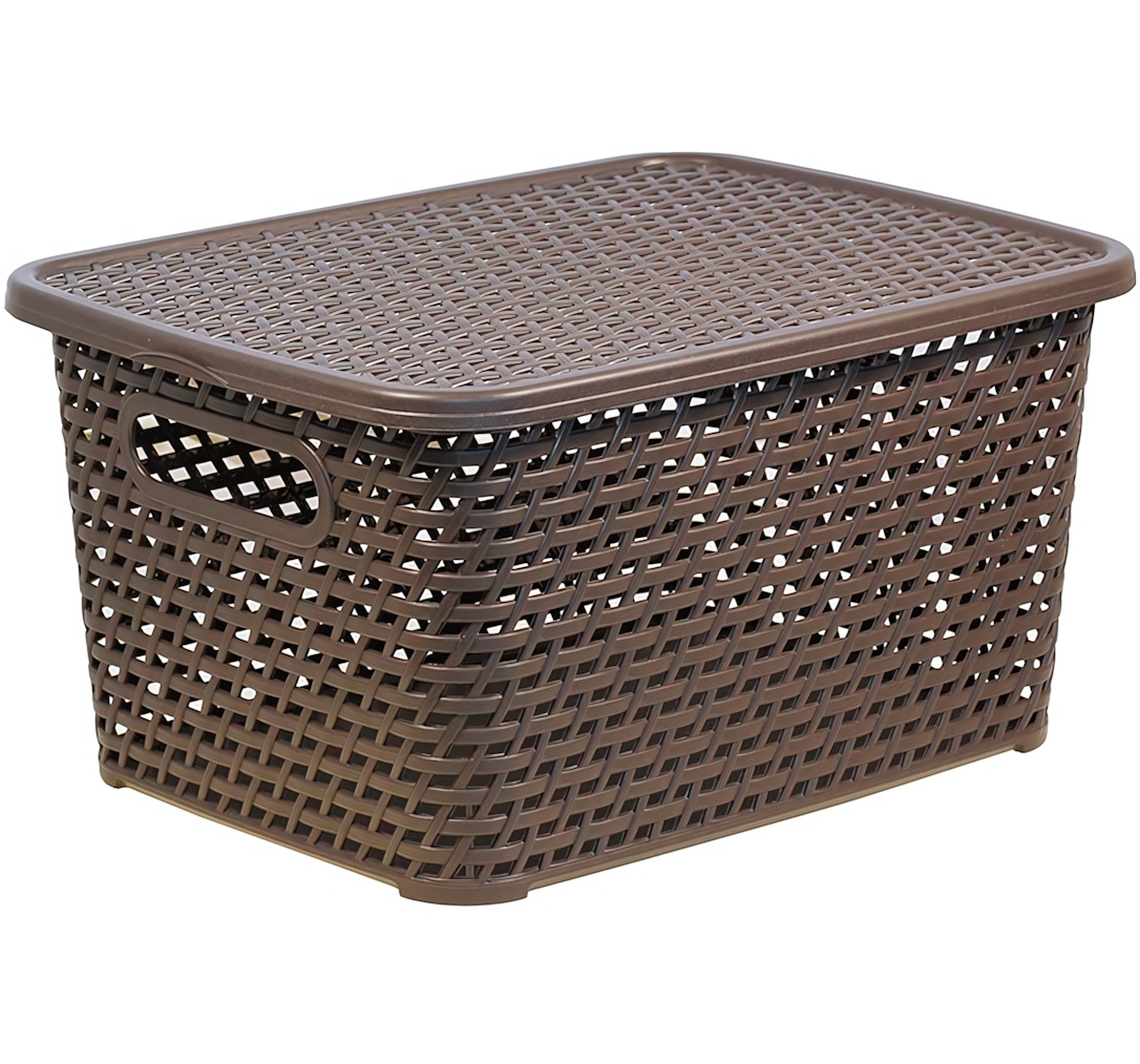 Контейнер для хранения с крышкой 4л, пластик под ротанг, 28х18,5х12,6см, коричневый