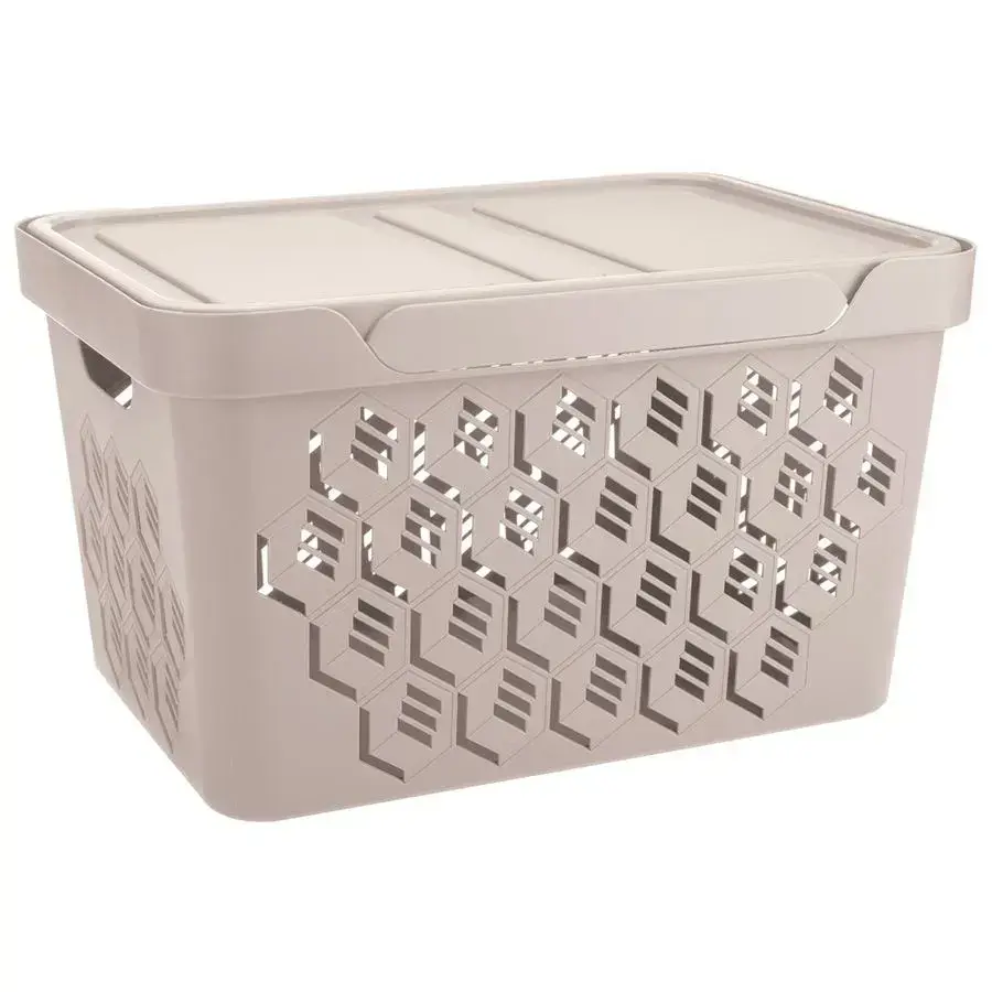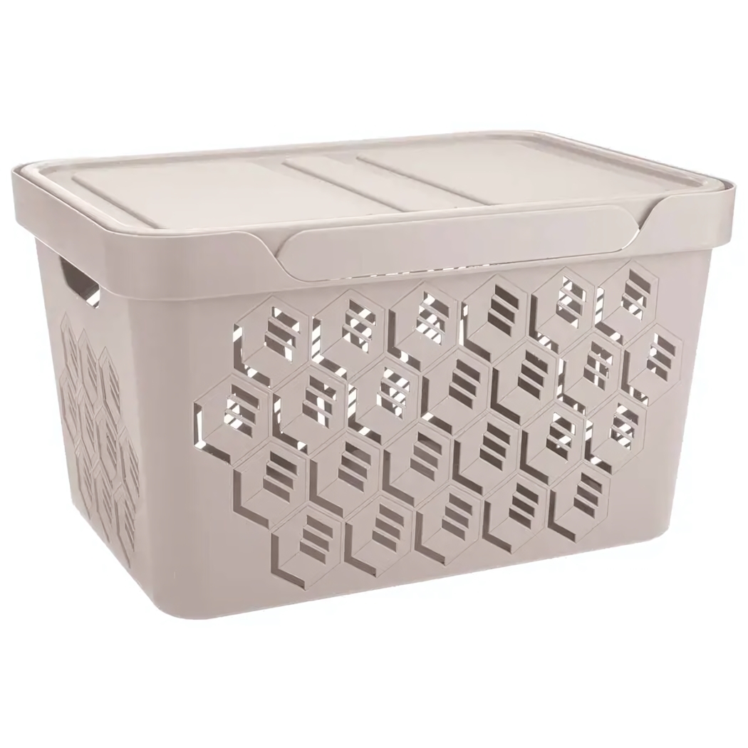 Пластиковый ящик с крышкой «Deluxe» — это эргономичное решение для хранения вещей в доме, офисе или на даче. Светло-бежевый оттенок гармонично впишется в любой интерьер, а шестиугольный декор добавит стильный акцент.