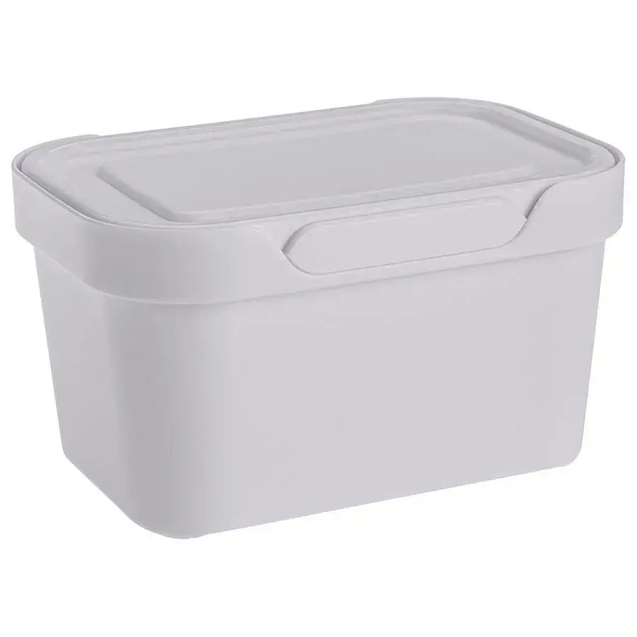 Изготовленный из прочного пластика, контейнер устойчив к деформациям и легко моется. Нейтральный светло-серый цвет гармонично впишется в интерьер кухни, ванной комнаты или гардеробной. Специальная система фиксации крышки предотвращает самопроизвольное открытие при транспортировке.