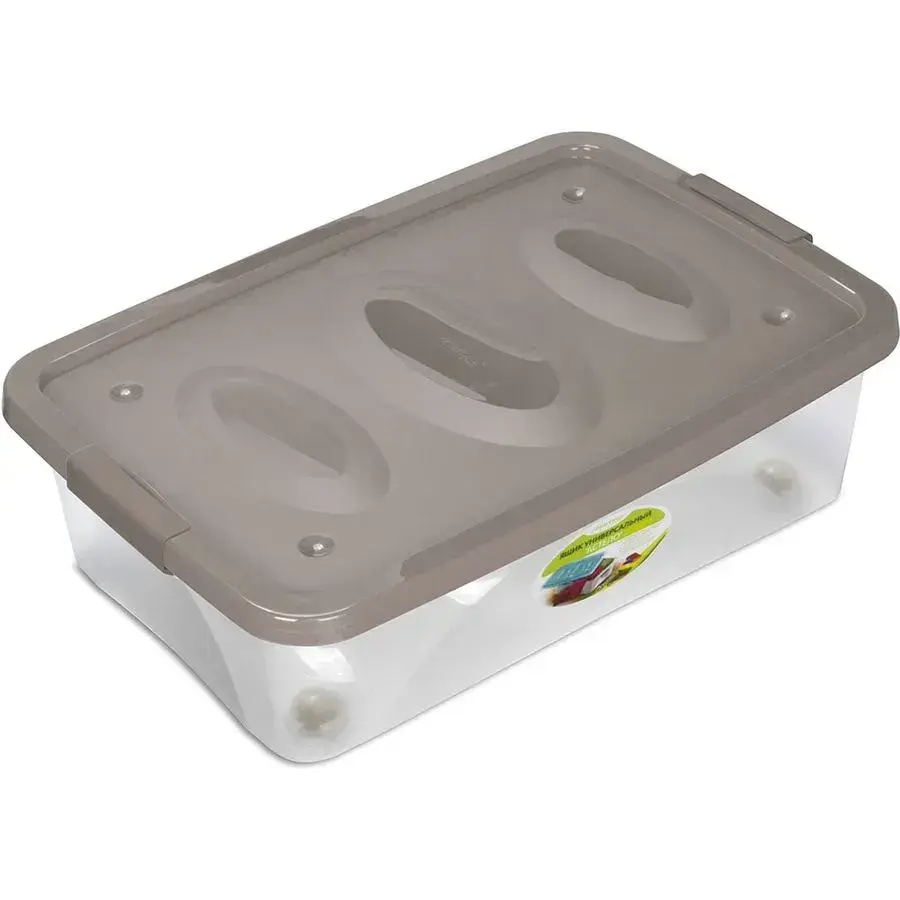 Прямоугольная форма с закругленными углами обеспечивает безопасную эксплуатацию. Светло-коричневая крышка с полукруглыми выемками позволяет штабелировать ящики друг на друга, экономя пространство. Прозрачные стенки помогают быстро идентифицировать содержимое.