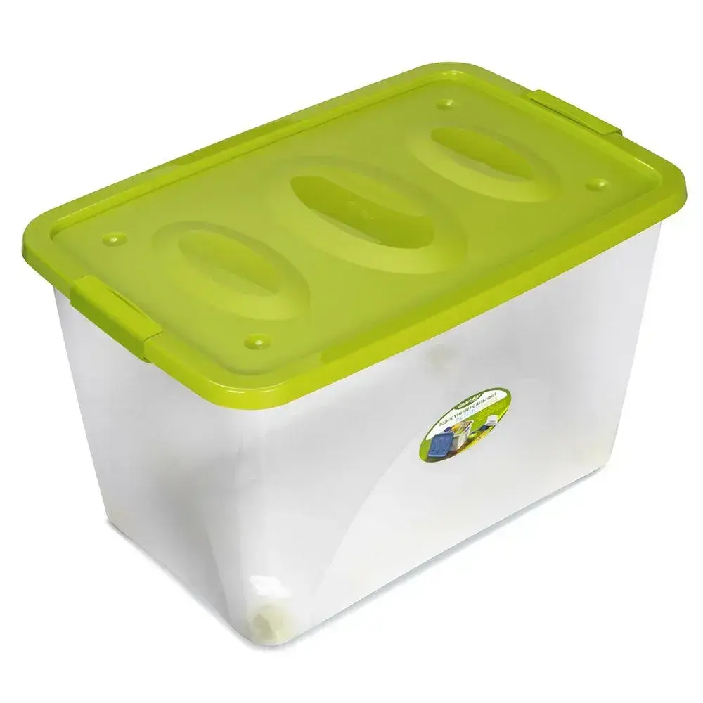 Изготовлен из ударопрочного пластика толщиной 1.5 мм. Зеленый цвет крышки сочетается с прозрачными стенками — вы всегда увидите содержимое контейнера. Габариты каждого ящика: 600х360х240 мм. Вес пустого контейнера — 1.2 кг.