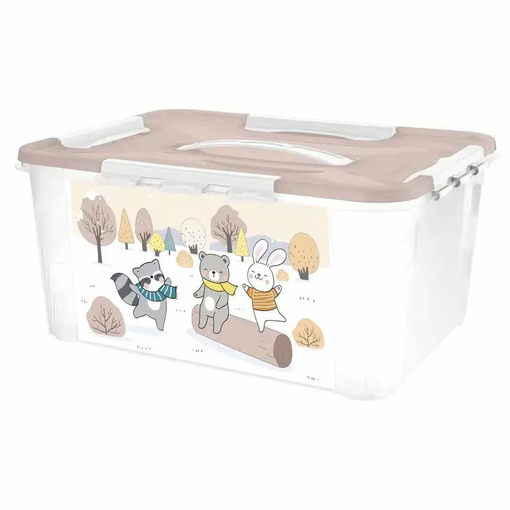 Ящик для игрушек с декором зверят, пластик, прозрачный корпус, бежевая крышка, 39х18 см, 15,3 л