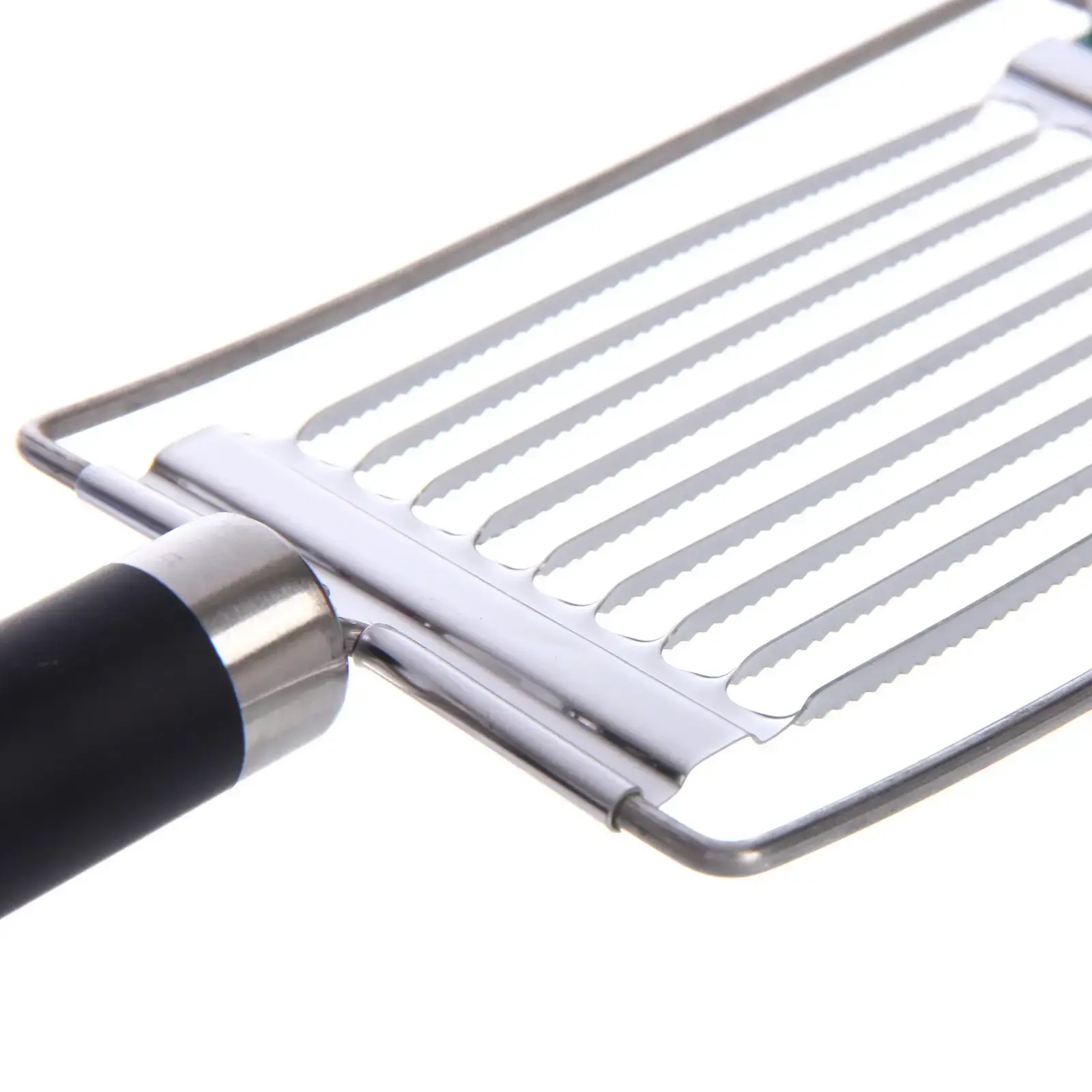 Металлические лезвия с антикоррозийным покрытием гарантируют ровные ломтики без крошек. Удобная эргономичная ручка из термостойкого ПВХ обеспечивает безопасное использование даже мокрыми руками.