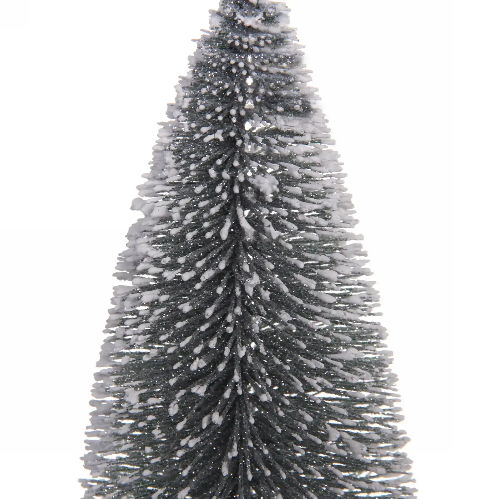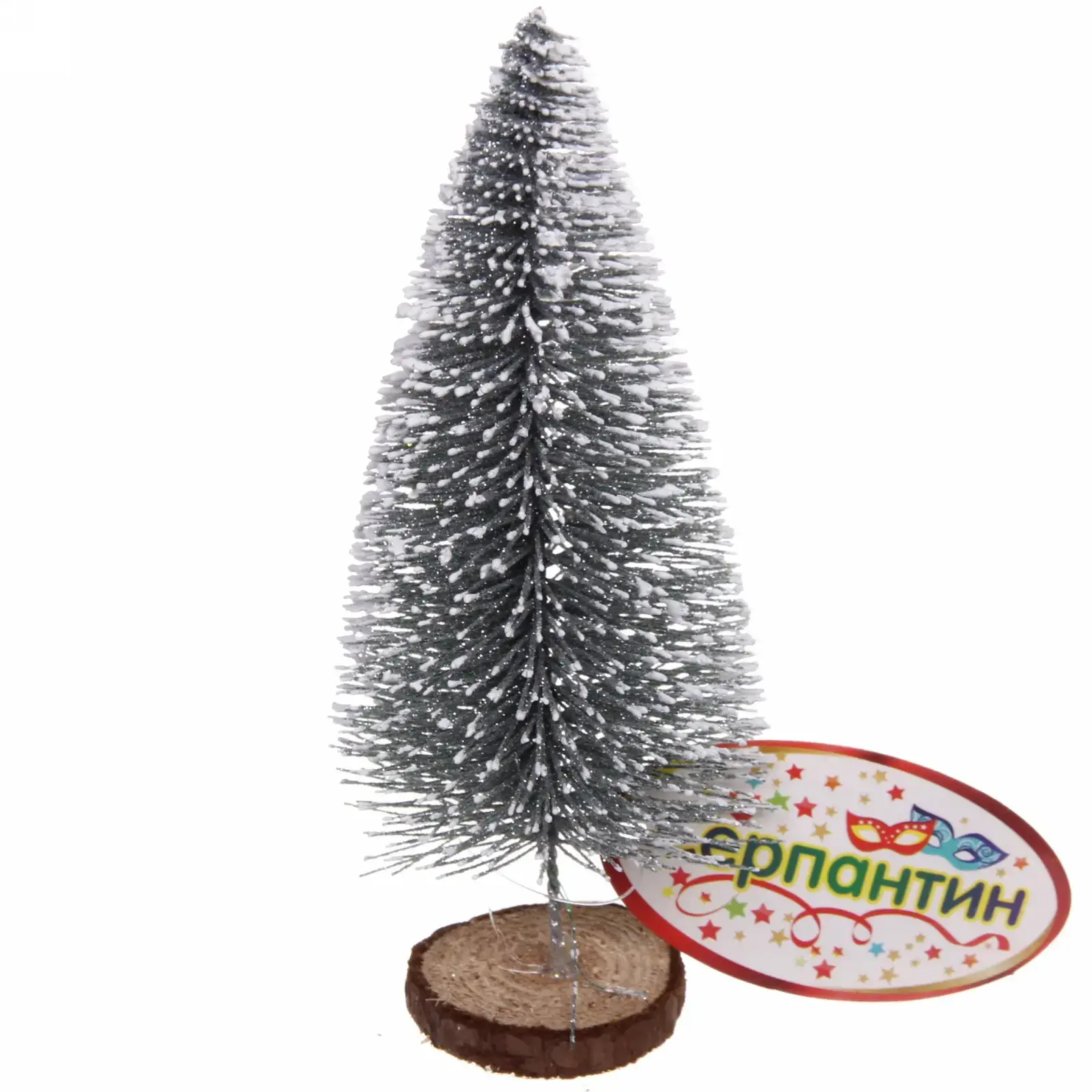 Ёлка имеет конусообразную форму и установлена на круглой деревянной подставке, что обеспечивает её стабильность. Высота 15 см делает её идеальной для использования в различных интерьерах. Серебристый цвет и белые вкрапления, имитирующие снег, добавляют ёлке особый шарм и делают её универсальной для любого стиля оформления.
