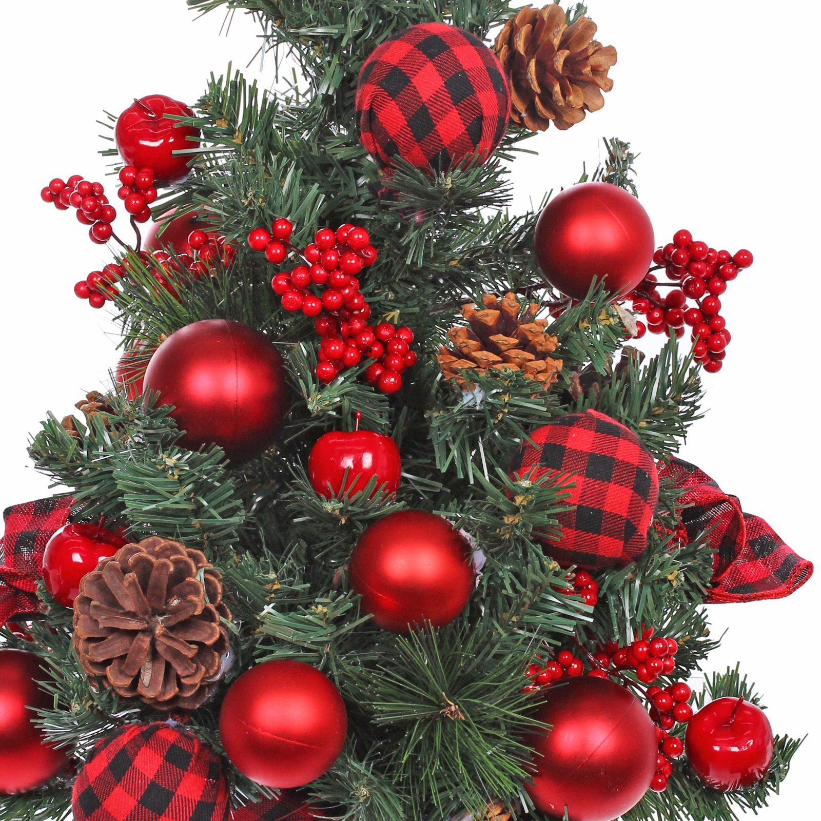 Ёлку удобно размещать на столе, в углу или в любом другом узком пространстве. Она идеально подходит для домашних праздников, корпоративных мероприятий и даже для офисных решений. Ёлка украшена красными шарами, шишками и ягодами, что делает её привлекательной и праздничной.