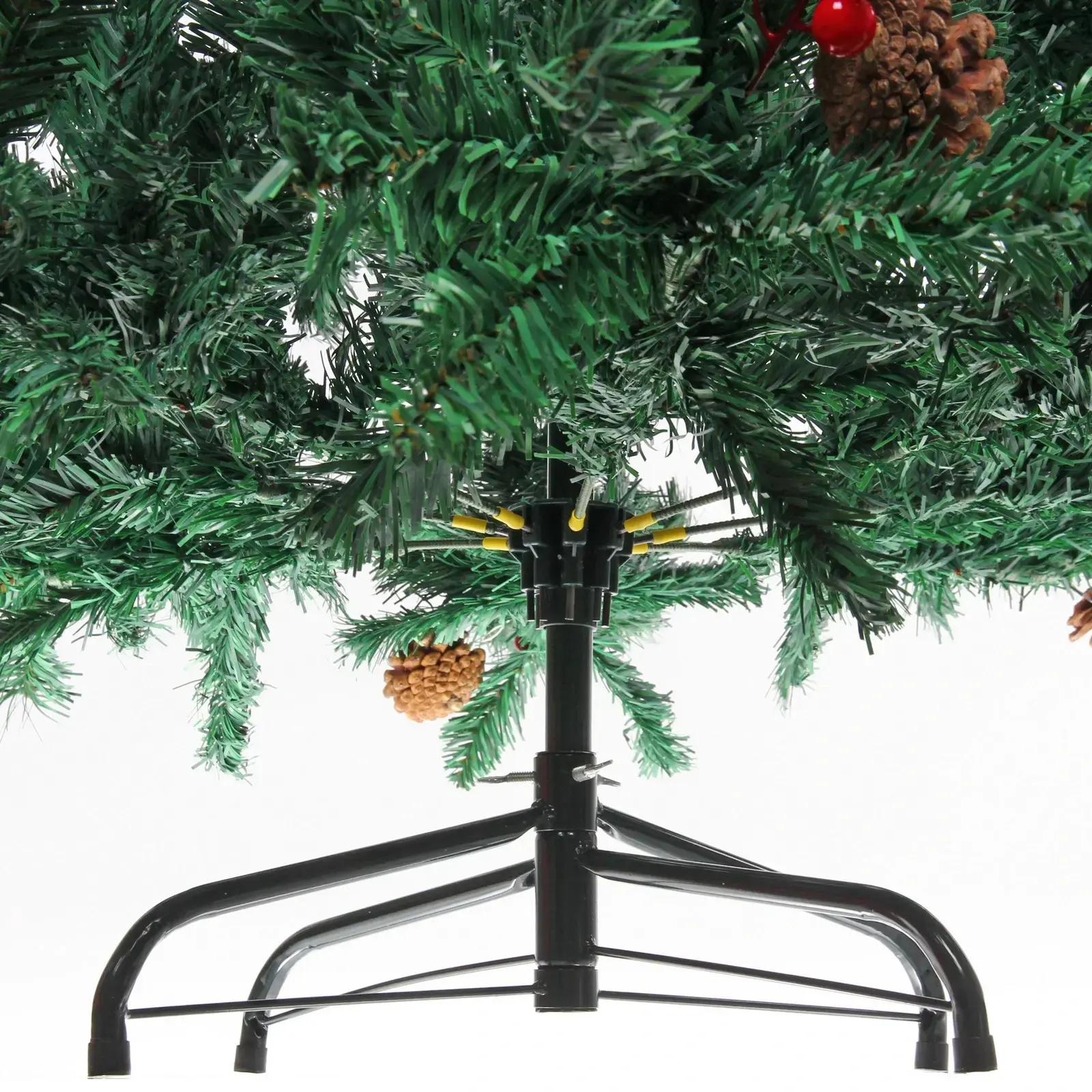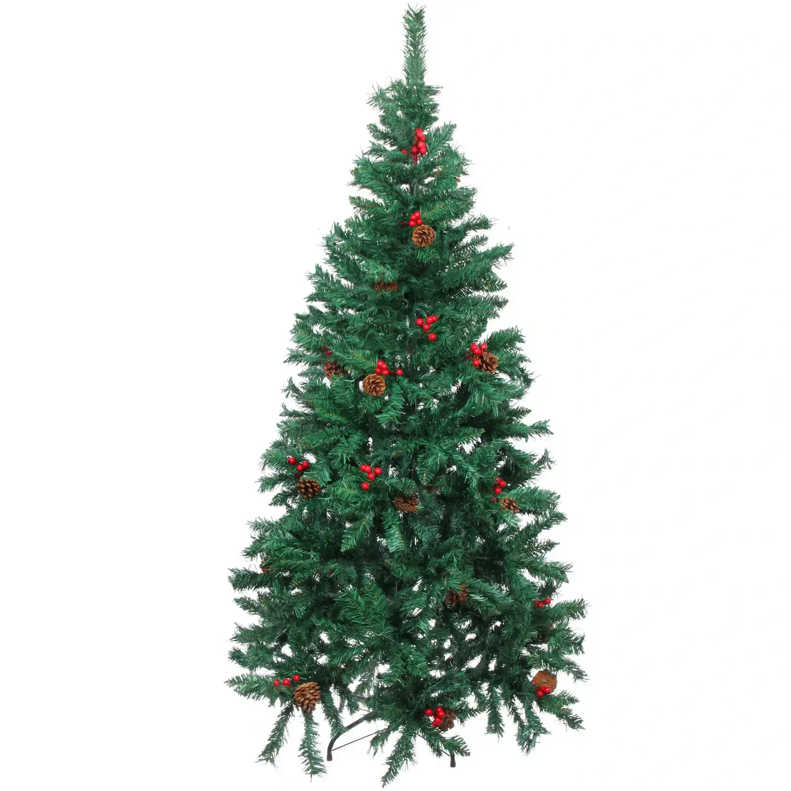 Ёлка «Финская» высотой 150 см — это идеальное решение для создания уютной и праздничной атмосферы в вашем доме. Она выполнена из качественного ПВХ, что обеспечивает долговечность и легкость в уходе. Пушистые ветви с декоративными шишками и яркими ягодами придают ей естественный вид, создавая ощущение настоящей хвойной ели.