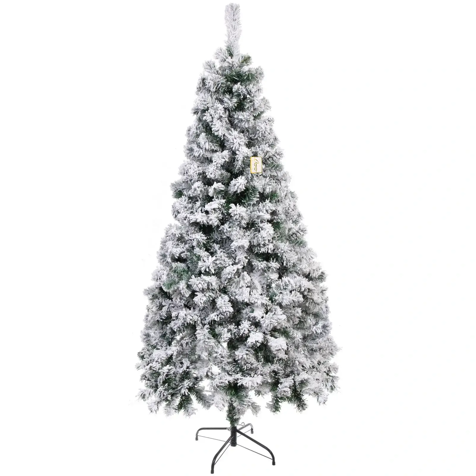 Ёлка искусственная «Камелия» 180см, густые ветки, с белым инеем, ПВХ, металлическая подставка, зимний эффект