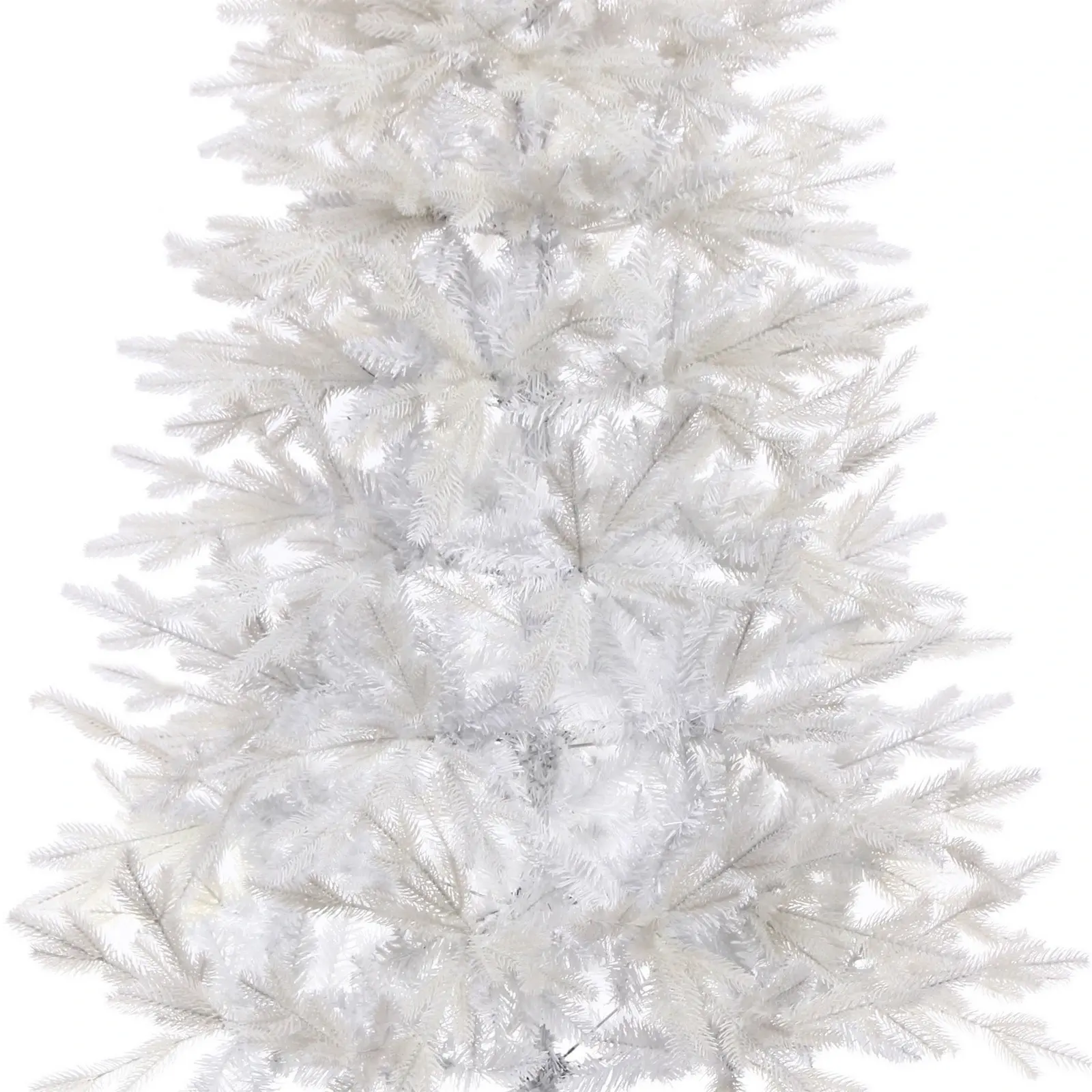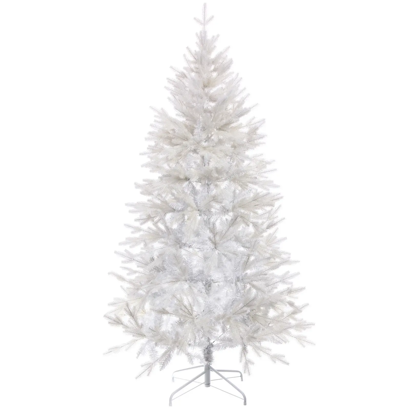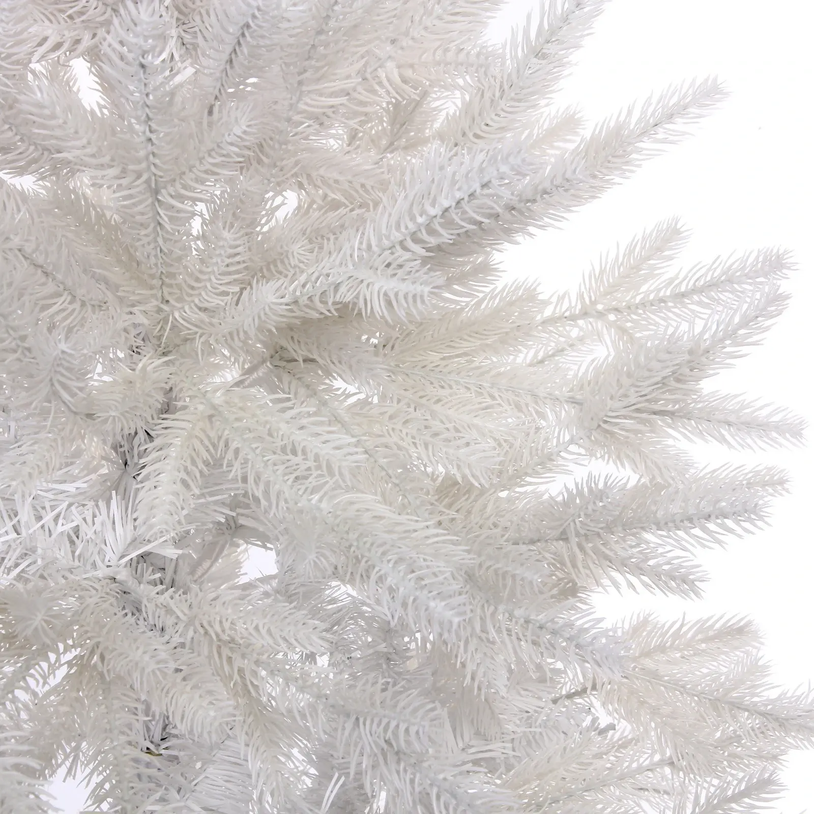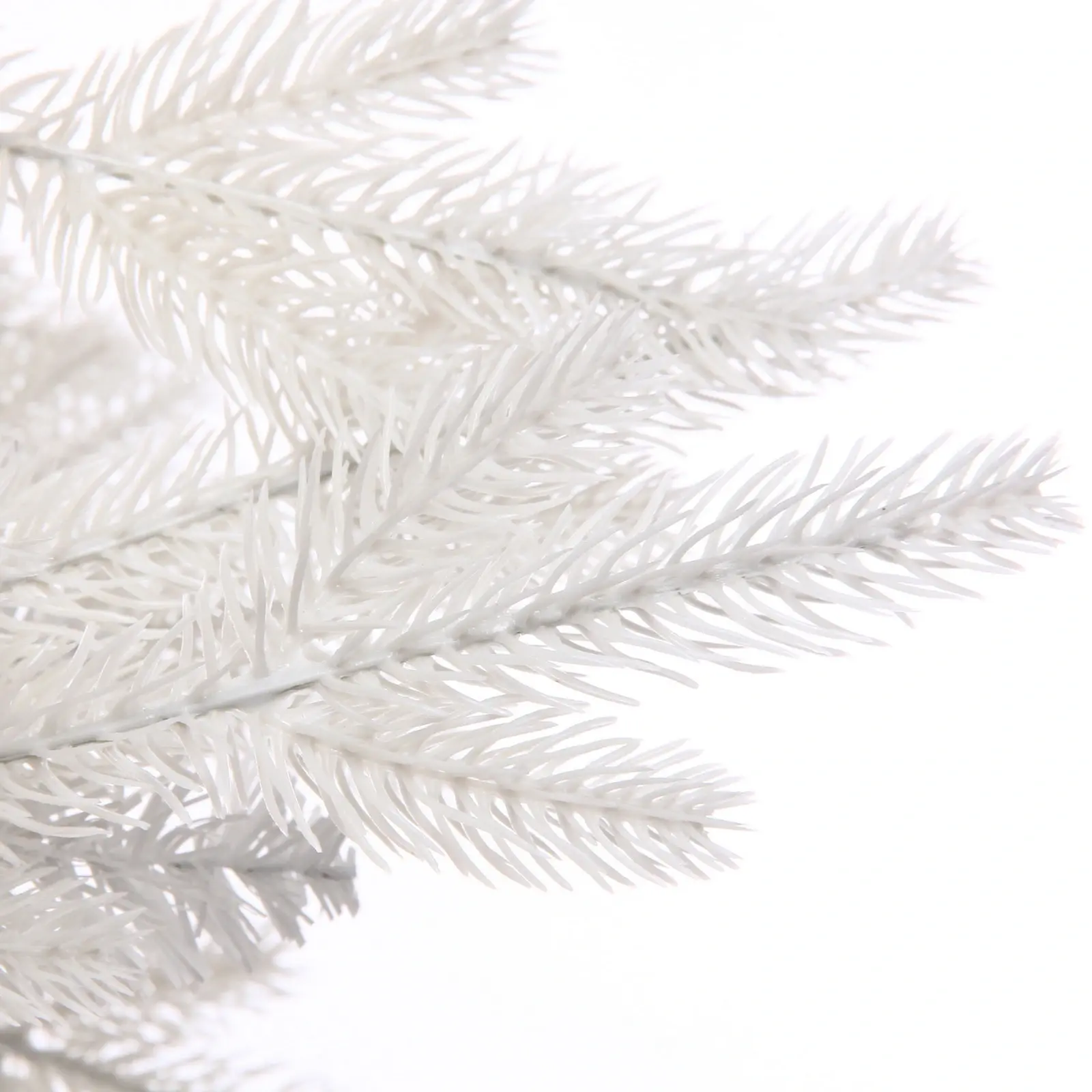 Высота – 180 см, материал веток – ПВХ и резина, количество веток – 560 шт., цвет – белый, основание выполнено из металла, покрытого белой краской. Елка легко разбирается и хранится в комплекте, занимая минимум места.