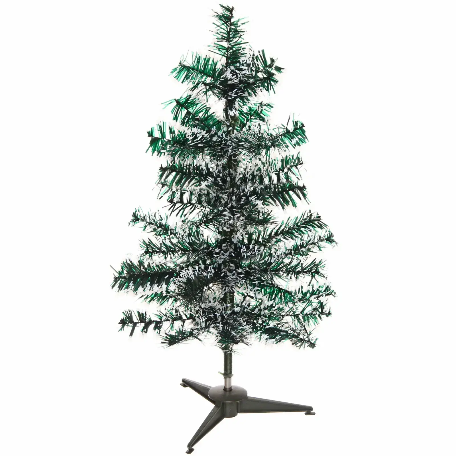 Ёлка «Метелица» имеет конусообразную форму и выполнена в белом цвете с зелеными вставками, что придаёт ей особый шарм. Она стоит на устойчивой подставке, что обеспечивает её надежность и стабильность. Размеры ёлки — 60 см в высоту, что делает её идеальной для размещения на столе или в углу комнаты. ПВХ-материал легко чистится и не требует особого ухода, что делает её практичным выбором для новогоднего декора.